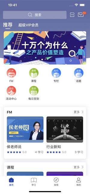 FM:碎片化的学习场景,让学员随时随地进行充电学习。