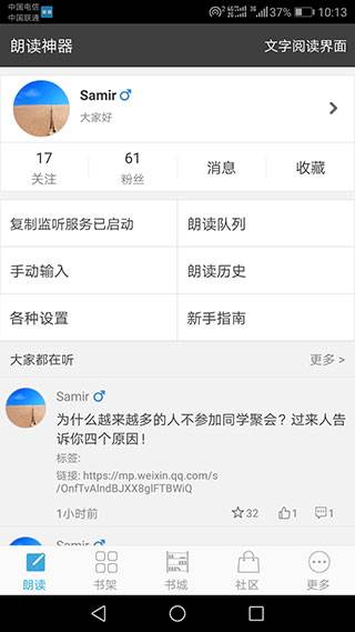 5、最后,您可以缓存多个听书文件,并进行顺序朗读;这意味着您可以提前下载一些您感兴趣的书籍或文章,然后按照顺序进行朗读;这样,即使没有网络连接,您仍然可以享受阅读的乐趣。
