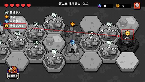 8、游戏关卡到最后会出现最终精英boss,将其消灭即可通关,玩家五格生命,失败一次扣一个,每次失败都能进行随从选择,玩家需要在有限生命次数内搭配出强力队伍,击败强敌。