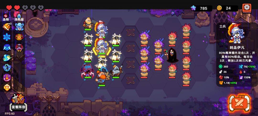 7、关卡中还可以进入商店,金币多就可以购买消耗品和圣物羁绊,提升战力。