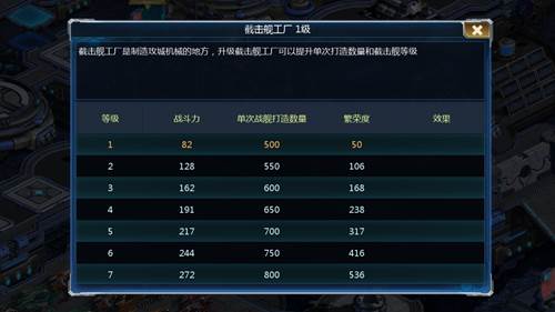 工厂顾名思义就是招募舰队的营地。建造工厂后玩家可以不断扩建工厂,以扩充军事实力,保证基地拥有长久兴旺的生命力。