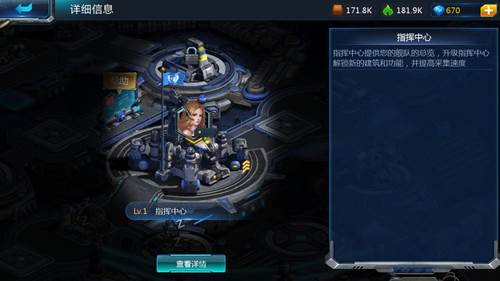 指挥中心在游戏中等同于大脑在人体的地位。玩家在指挥中心里可查看基地当前的资源和行政信息,通过这些信息,玩家就能清晰布局基地未来的工作。