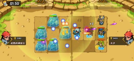 竞技场是《塔防之光》的另一种独立玩法。在遭遇战中,玩家最多可以派遣5个单位上场,并只能派遣英雄或者高级职业。游戏的目的是在有限的时间内,消灭敌方的所有单位。