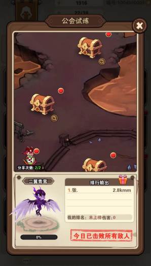 任务3:全公会一起通关公会试炼,类roughlike玩法每个关卡由公会成员对Boss达成累计伤害,成功后可全公会都获得宝箱奖励!