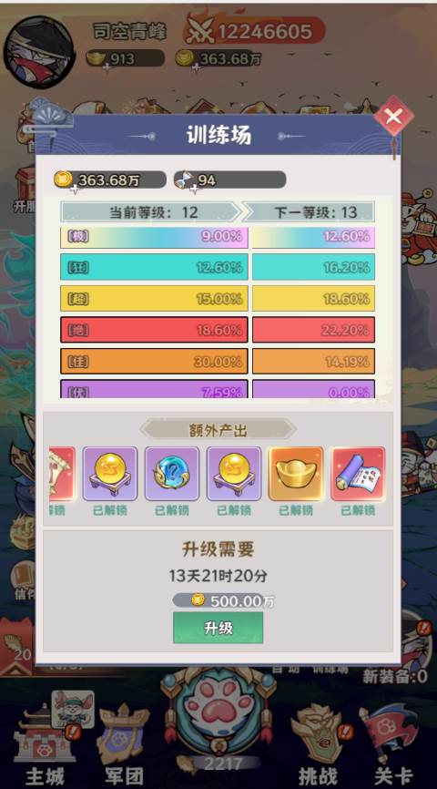 3、升级训练场等级