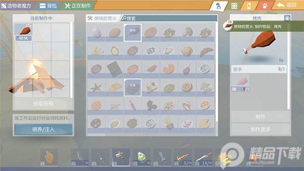 建议萌新以肉食为主,可以制作一些简单的【石器】捕获兔子或其他动物,搭上营火进行烤肉。食用肉类可以获得更久的饱腹感,充饥备用效果远比蔬菜更好。