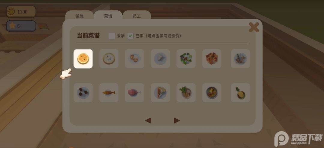 2 、及时查看自己的星星数,学习新的菜肴,丰富餐厅的菜单,这样才能让顾客满意;