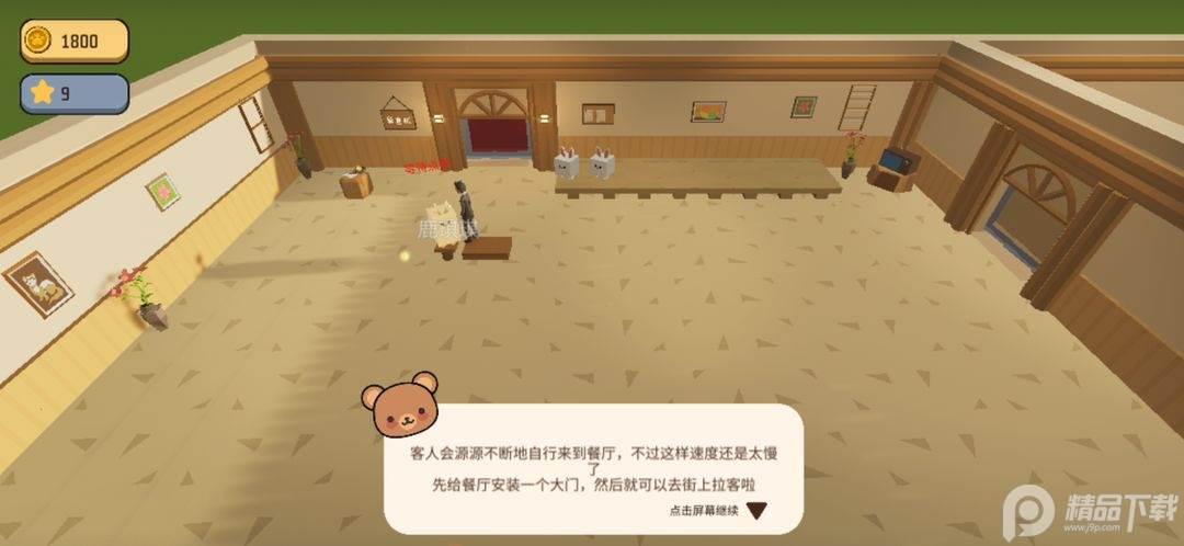 进入游戏后,先要完成教学流程,学会如何清理垃圾保持餐厅卫生、制造餐桌、学习菜单以及接单客人等一系列任务。完成后,岛主们需运用策略来经营自己的餐厅从而赚取更多的金钱。