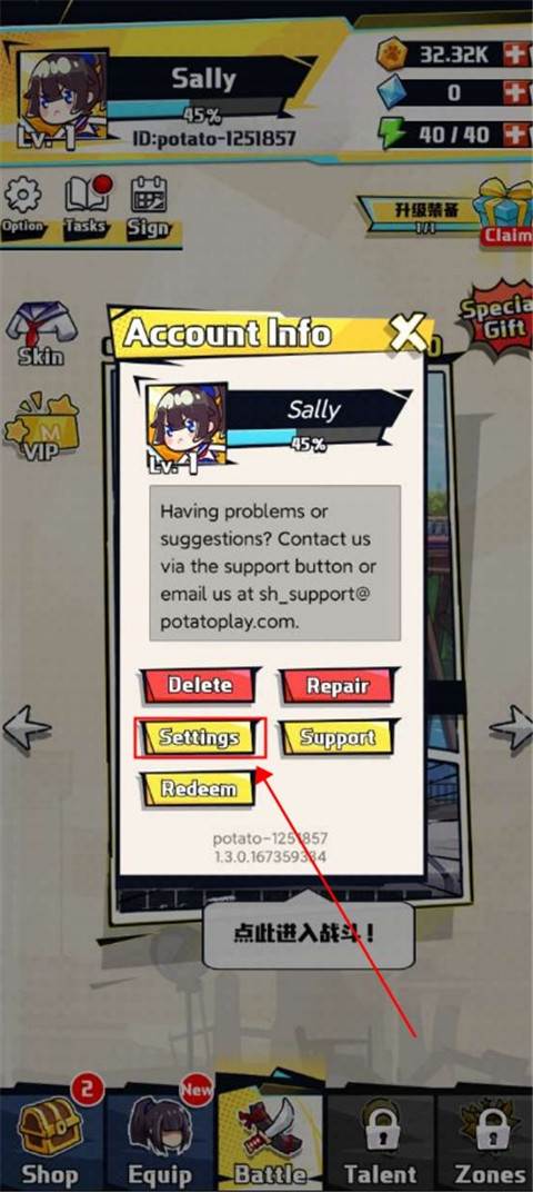 2、通过教程关后,我们来到游戏界面,点击右上角的设置