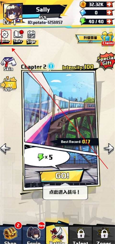 1、首先打开游戏,点击战斗,选择章节