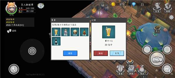 总体而言果汁和素汤的制作和成分最为简单,建议可以先将小店的座位给修好(5木板+5木棍好像),这样子能同一时间招待更多客人!