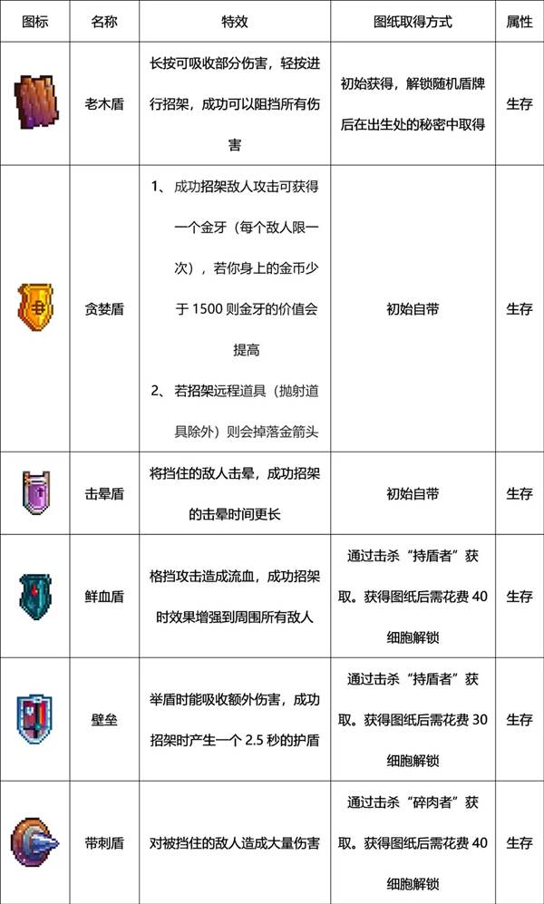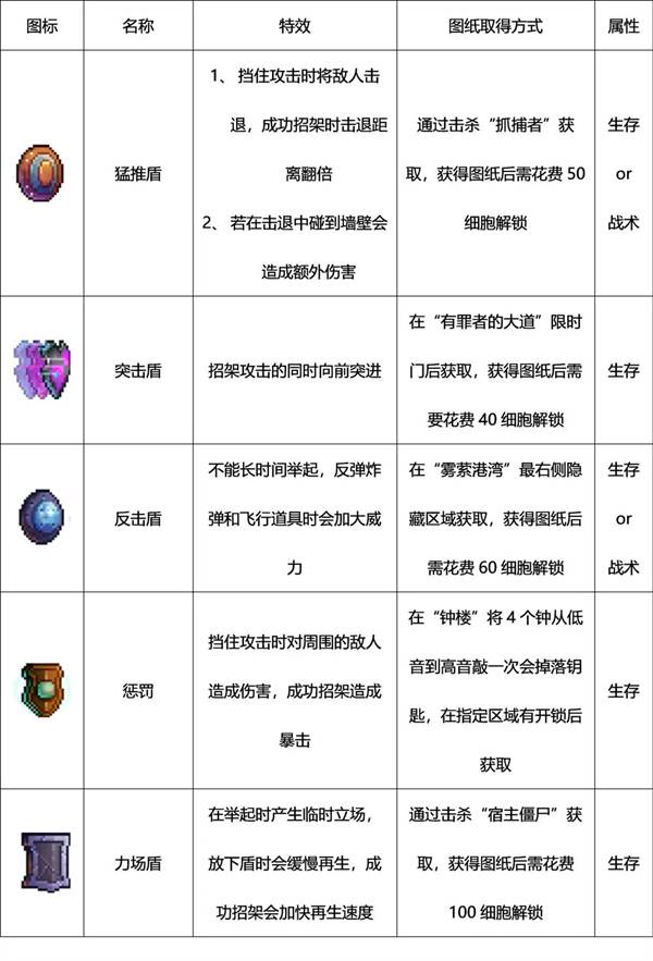 盾牌可以举起减少伤害并反击敌人,在恰当的时机瞬间举盾还可以招架、完全防御并且反伤敌人,同时弹回远程攻击。