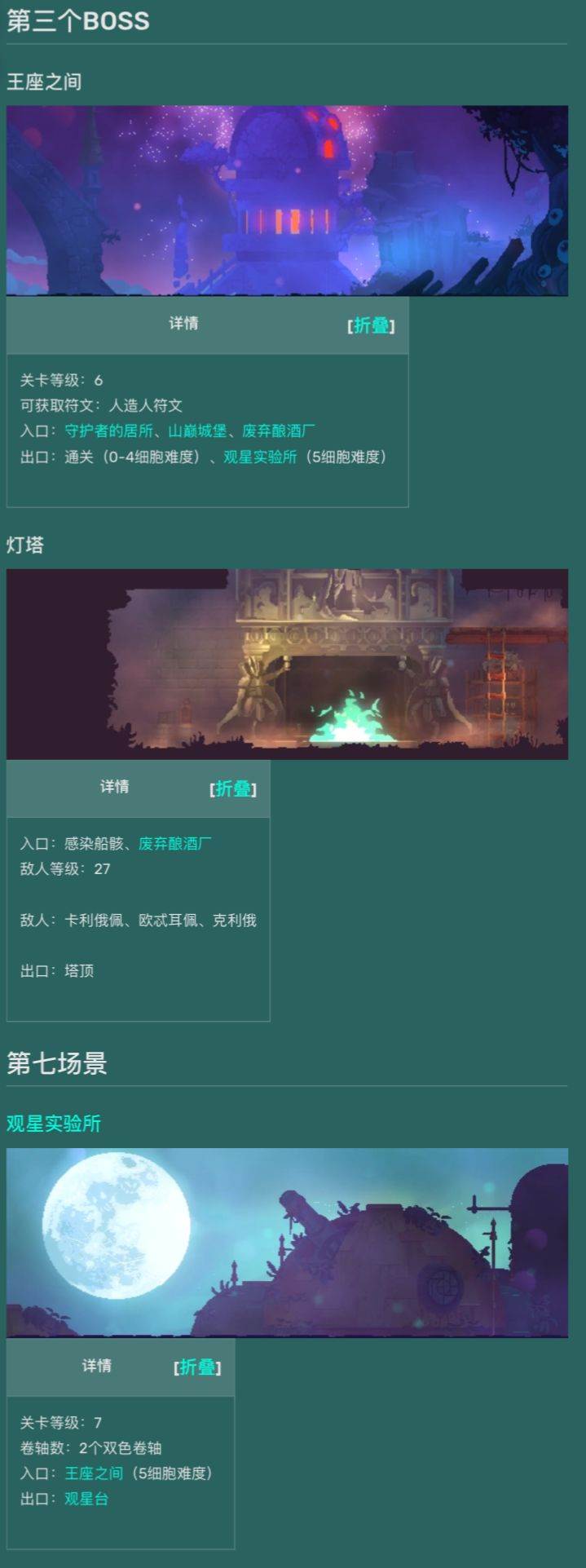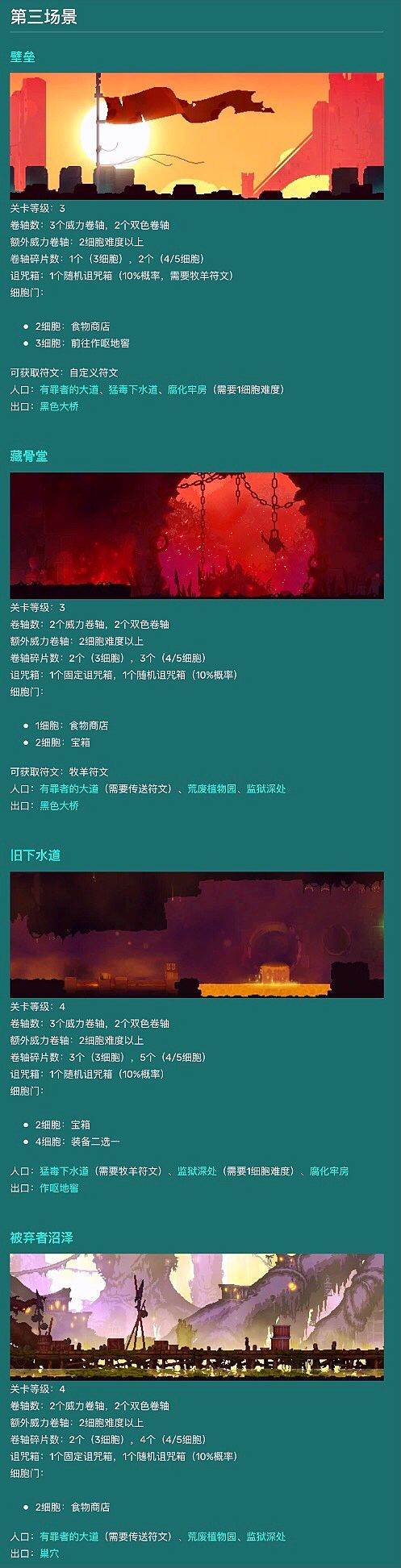 1,五细胞卷轴最多的路线:被囚者的牢房→猛毒下水道→腐化牢房→旧下水道→作呕地窖→沉睡的庇护所→山洞→守护者居所→山巅城堡→王座之间→观星实验所→观星台(特殊种子除外)