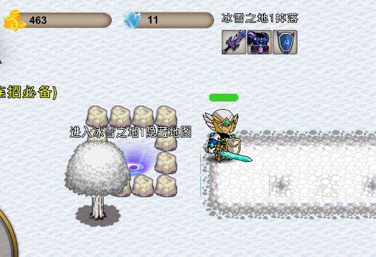 冰雪1:在左下角,从石头的左下方冲刺进去