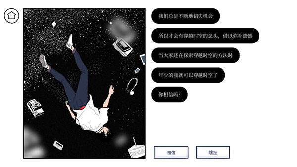 2、接着我们会开启一段序幕,点击“相信”穿越时空