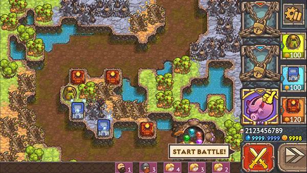 被诅咒的宝藏2手机版最有特色的地方,就是加入了魔兽争霸那样的运营思路,我们在建造塔的同时,可以选择金矿、城市来生产金币,给自己使用,也让策略变得各加多样了,塔流、发育流,都是值得考虑的