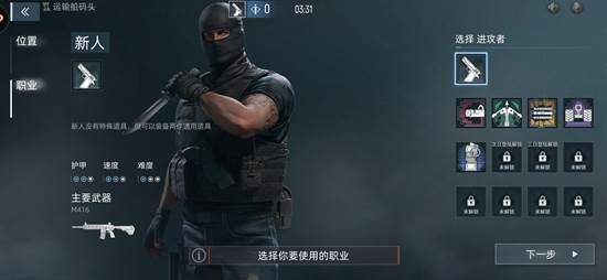 玩家可以在每一回合开始前进行角色选择,携带的武器 / 道具,以及出生地的选择。每进行一个回合的游戏后双方的攻防身份便会对调,此时又可以重新选择一次。因此想要真正提升自己的实力,进攻和防守两个阵营的玩法都需要融会贯通。