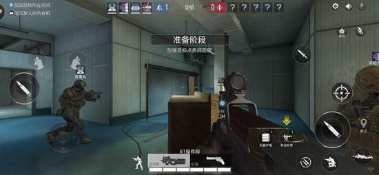1、游戏内的墙体、天花板等均可以加固或破坏。玩家可以在游戏中看到进攻方突然炸毁墙面发动奇袭,也可以看到防守方故意破坏天花板,对着缺口从刁钻的位置进行埋伏。