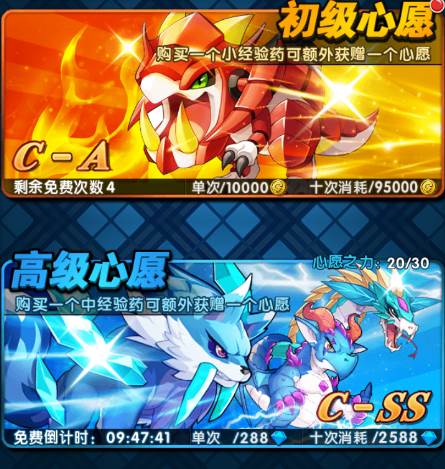 除了野外冒险抓捕宠物外,游戏中也提供了扭蛋的功能,有初级心愿和高级心愿,初级心愿每天都有5次免费次数,高级心愿每48小时有一次免费次数,让大家尽可能方便的获得宠物,这些福利送给大家,希望大家能够感受到工作人员满满的诚意。