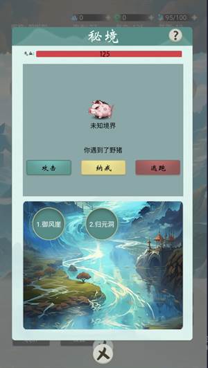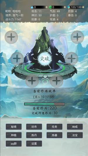 1、玩家在挂机时会增长修为,当修为累积到一定数额便可突破
