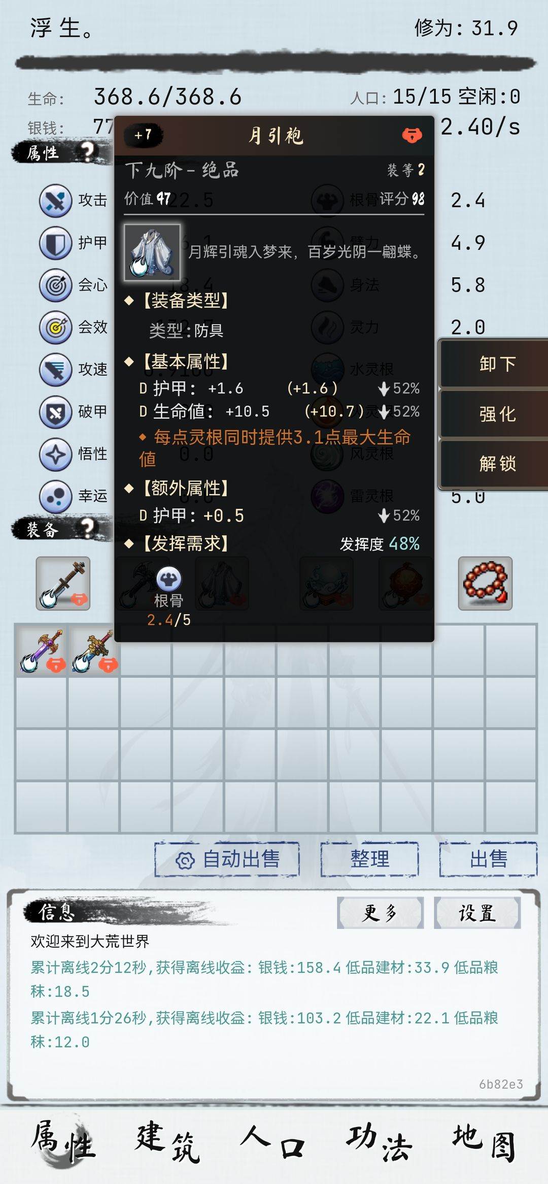 1.在《大荒几许》中,玩家不仅需要完成任务,还可以收集各种资源和道具,以提升角色的能力与装备。