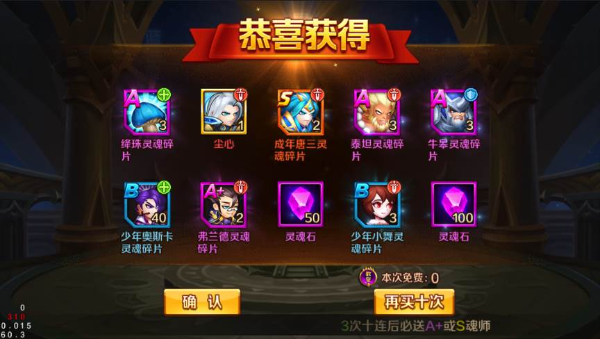 1.武魂殿十连(我个人十连了两次,截图如下)