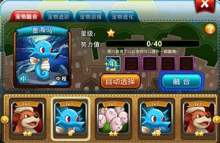 宠物融合,宠物融合需要使用同类型的宠物进行融合,融合主要会提高宠物的努力值。努力值的绿条满格后,宠物星级会直接提升。这也是目前提升星级最迅速直接的办法。