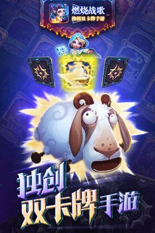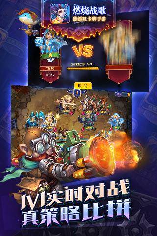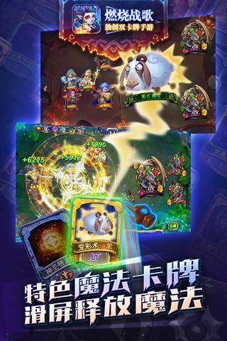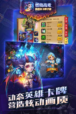 卡牌游戏也能玩的热血澎湃,《燃烧战歌》一款魔幻风格的卡牌对战手游,业界领先的cocos2d-x引擎开发,独特的doll-Extra技术制作,给你动感唯美的视觉体验,Q萌的人物,恢弘的场景,全新的玩法,独创双卡牌玩法,重新定义卡牌游戏!