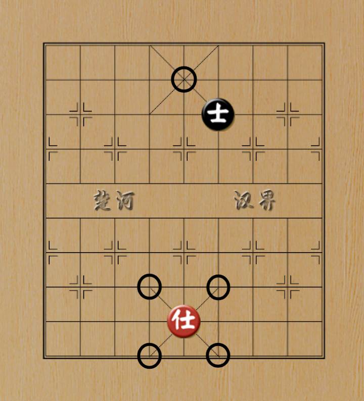仕(士)是帅和将的贴身“警卫”,九宫内的两条斜线,就是专门为它划的。它只能在九宫之内走动,沿着斜线每着限走一格,或进或退均可,不准直走或平移。