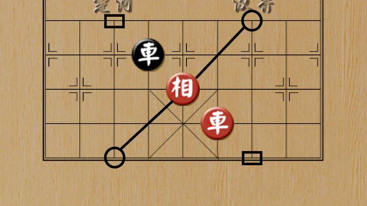 如果在对角线的交叉点上,也就是在“田”字中间有一个棋子(无论是自己的还是对方的棋子)挡道,它就不能“飞”过去,这就叫“塞相(象)眼”。例如图 2-9 中的红相,不能向“矩形”两点飞,是红车和黑车“塞相眼”的缘故。