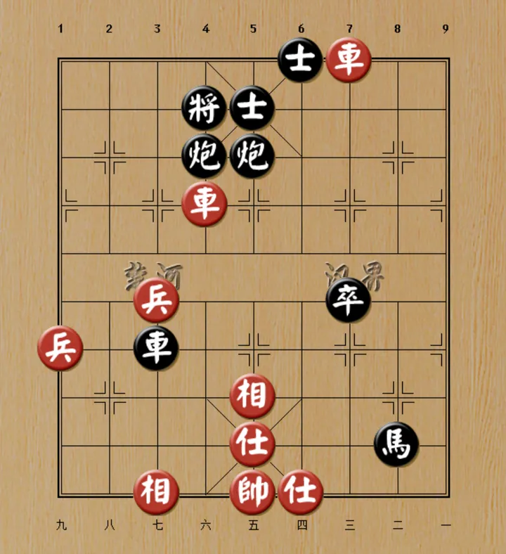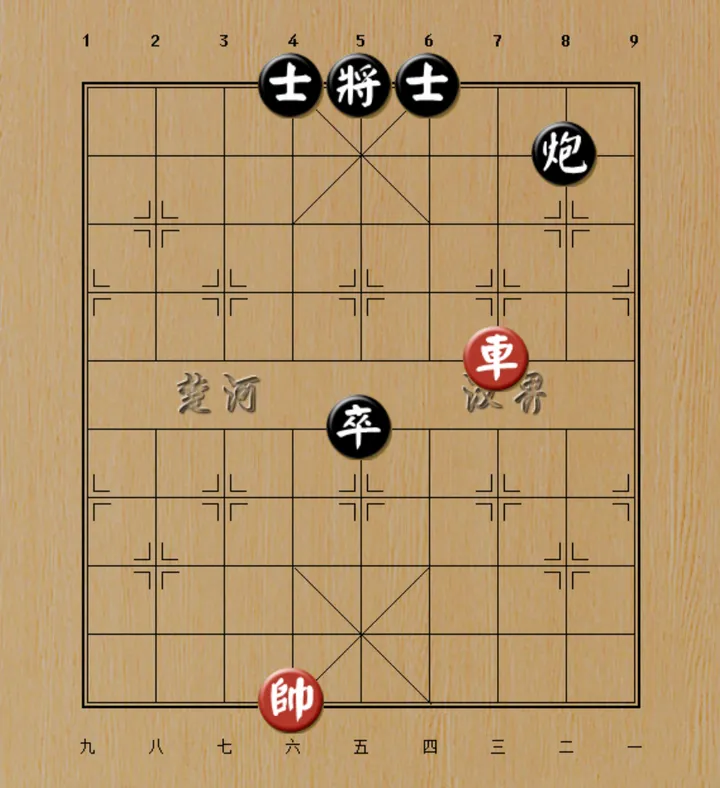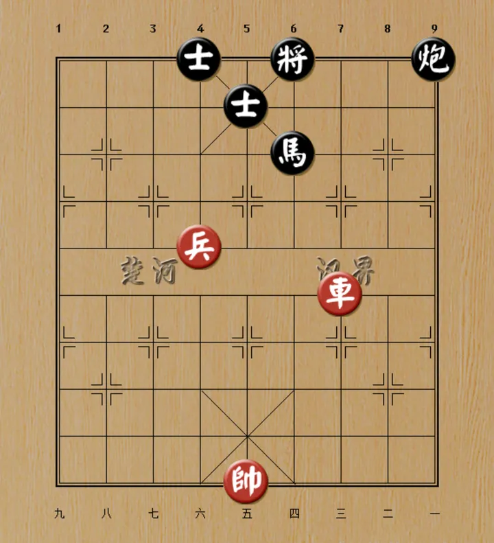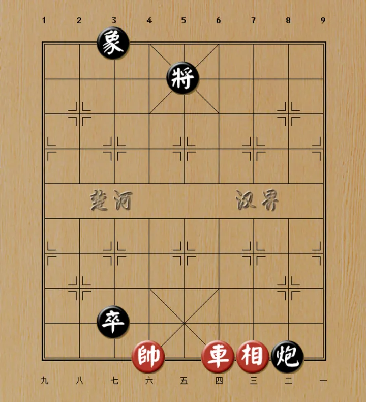 图 6-8,5aR2/3ka4/3cc4/3R5/9/2P3p2/P1r6/4B4/4A2n1/2B1KA3 w - - 0 1