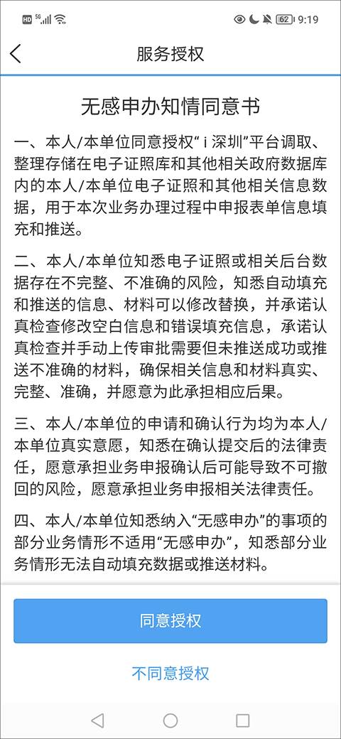 3、在服务授权界面,找到并点击“同意授权”选项;