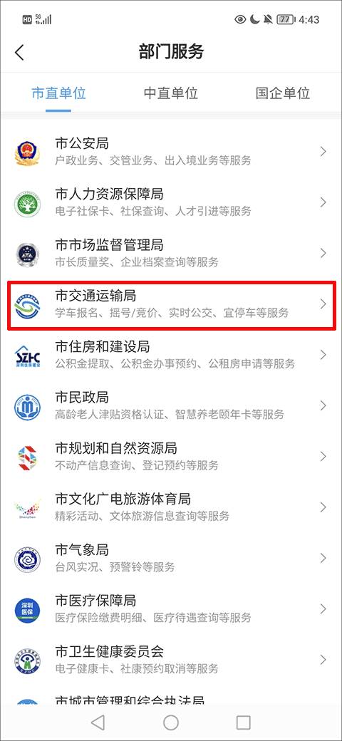 6.单位专区:进驻福田区、罗湖区等10家区级单位,人力资源保障局、公安局交通警察局等33家市直单位,深圳税务、深圳海关等3家中直单位,水务集团、机场集团等19家国企单位。