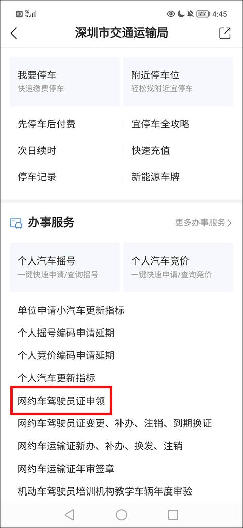 5、进入交通运输局办事页面,下拉页面选择【办事服务-网约车驾驶员证申领】;