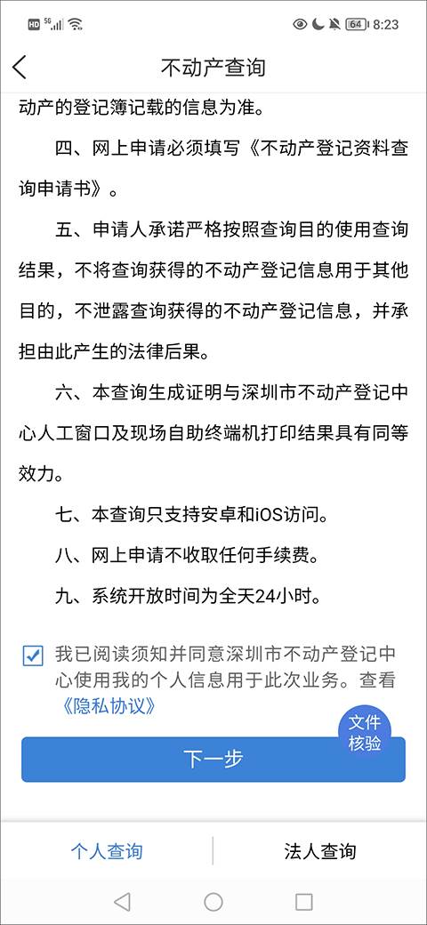 3、在页面底部勾选已阅读协议,点击【下一步】;