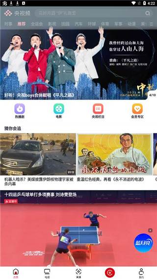 5、点击首页,软件首页里面有各种热播剧、电影、央视栏目推荐还有很多的实时热点和资讯。