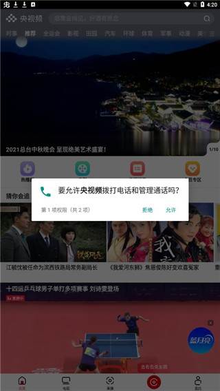 3、点击允许央视频拨打电话和管理通话。