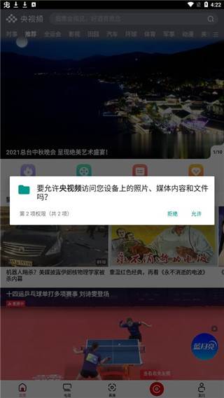4、点击允许央视频访问您设备上的照片、媒体内容和文件。