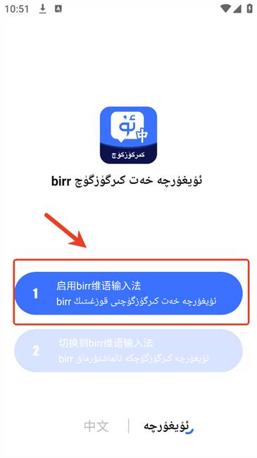 6.完成设置后返回第2步的页面,点击“切换到birr维语输入法”