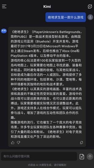 Kimi Chat 的回答基于生成内容,每次回答可能略有不同。虽然其知识库庞大,但有时可能会出现信息错误或偏差。