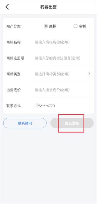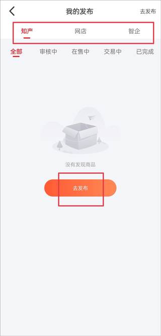 2、在我的发布中,选择知产、网点或者智企后,点击去发布