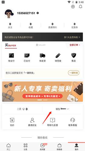 只二可以在出售商品后将软件中的余额提现,不清楚的用户请参考以下操作。