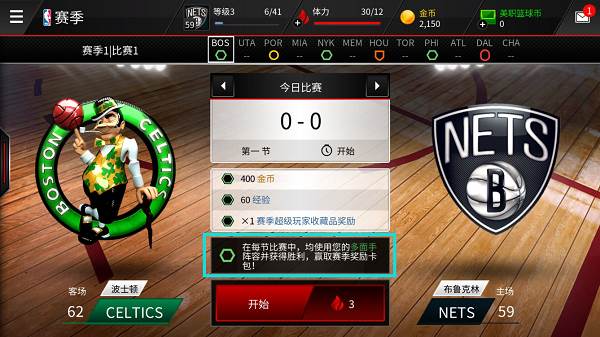 在赛季模式中,你必须赢得一定场次的常规赛才能突入季后赛。在季后赛和总决赛中,你必须赢得每场比赛,否则将直接出局!