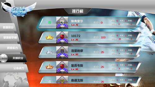 点击战绩与排行榜,你可以查看最近的比赛成绩以及当前的排名状况,让你对你的实力有一个清醒的认识。成为最强球队,任重而道远。