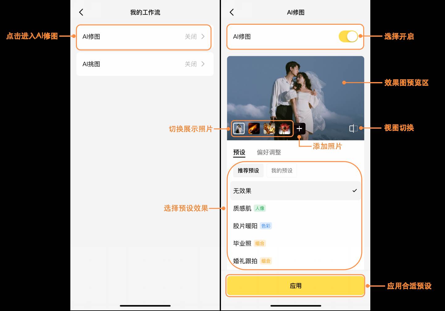 提供多种AI色彩风格,通过像素级AI视觉分析,对每张图赋予最优参数,形成专业级和个性化的质感色彩。