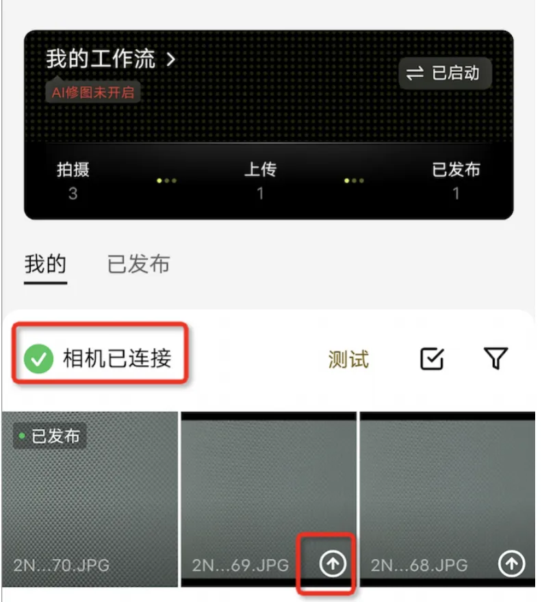 传输到芝士内到照片可以点击图片右下角上传按钮,上传图片到云服务器。
