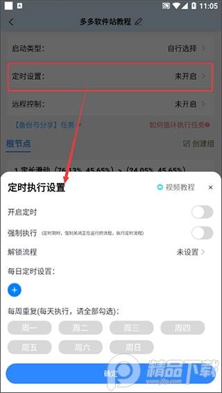 5、另外你还可以进行定时设置,开启定时设置在指定时间就会执行此任务。