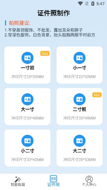 5 模版选择:拥有丰富的精美模版供用户选择,适合各种场景需求,如证件照制作等。