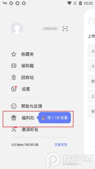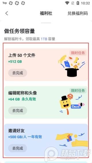 4、完成任务后回到福利社,点击兑换即可获得容量奖励