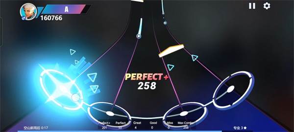 4种乐器1个玩法和1个综合的考证,不过大家只要记住,考证一段看评分,二段看连击次数、失误次数(MISS)和完美次数(PERFECT+、PERFECT、GREAT)。